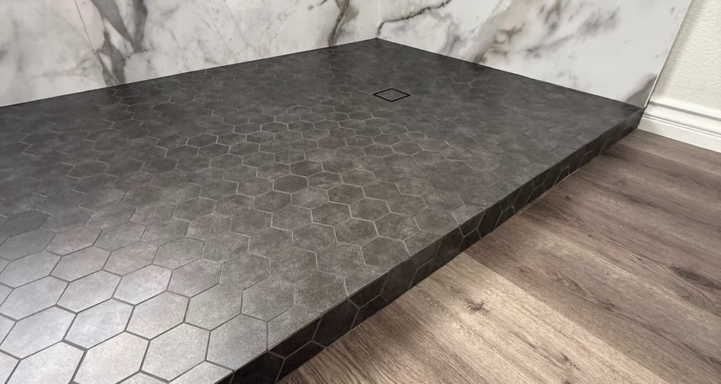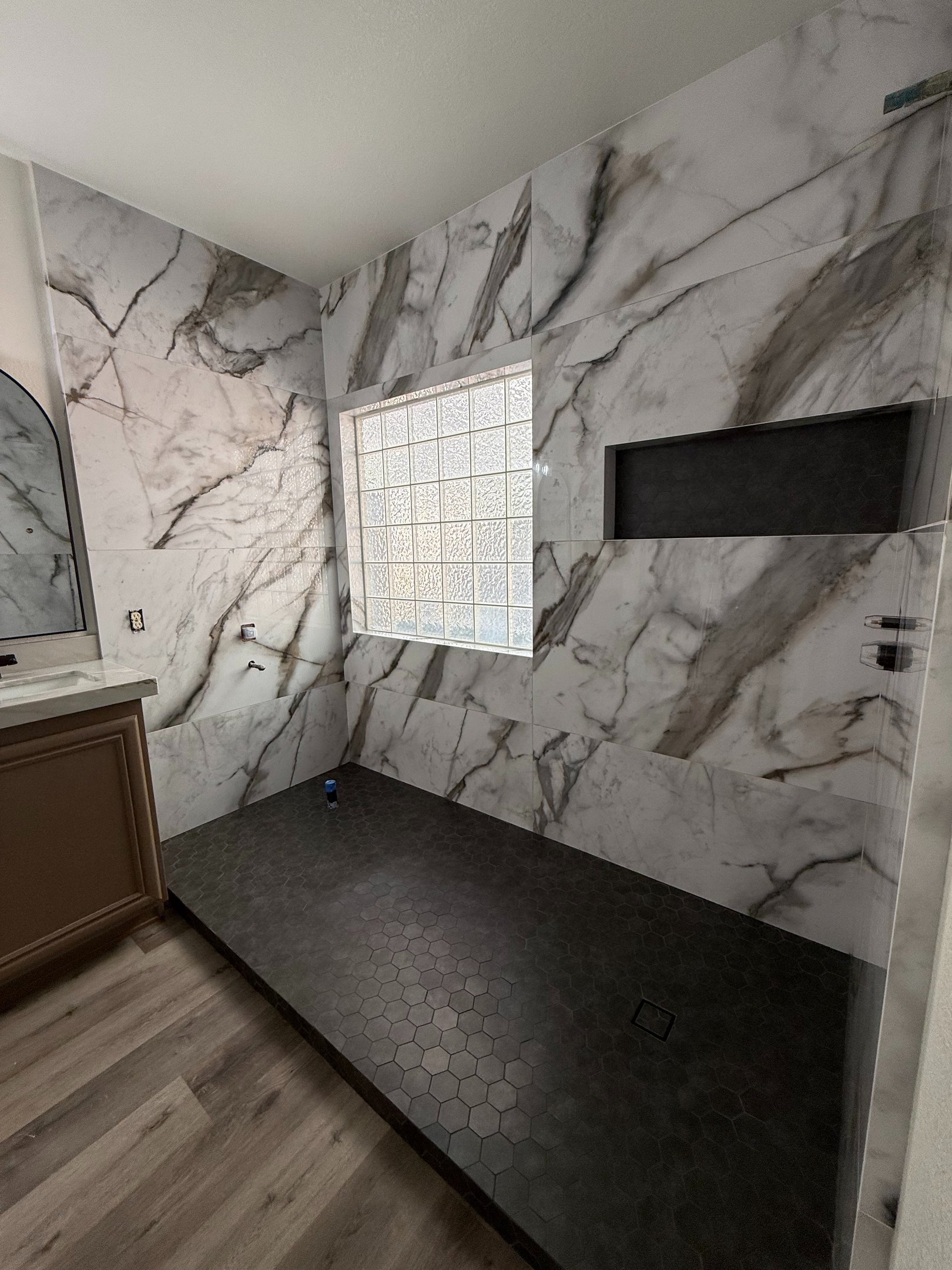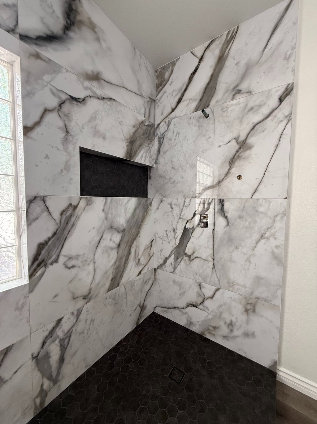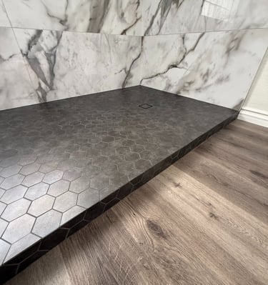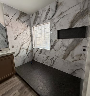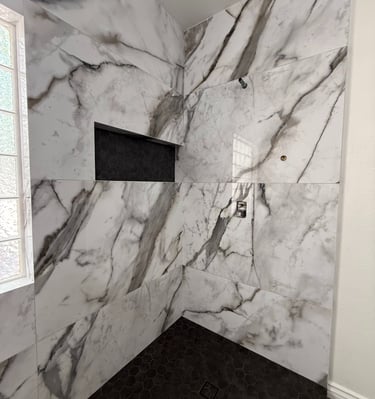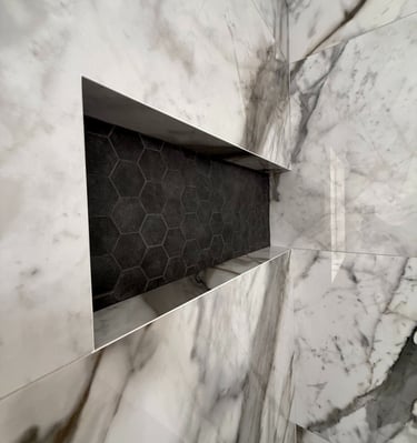 Full Shower Remodel with mitered edges.