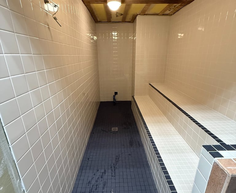 Tile installation by Antz Construction - specializing in precision tile work for pools, patios, exterior spaces.